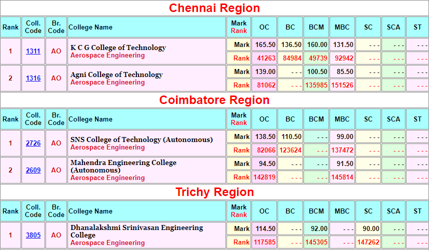Anna University Cut off Marks 2023 based on tnea 2022 admission (Last but 1 year) Branch wise