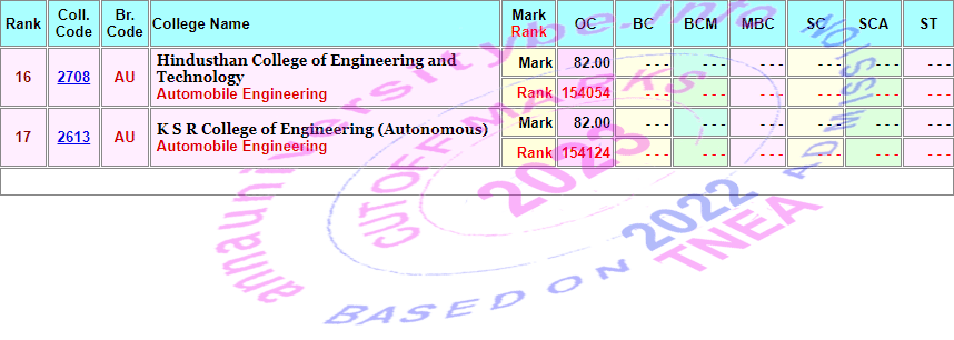 Anna University Cut off marks 2023 based on TNEA 2022 admission marks