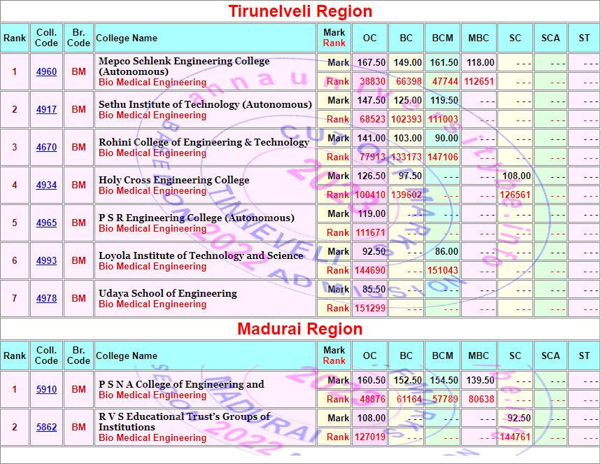 Anna University Cut off marks 2023 based on TNEA 2022 admission marks