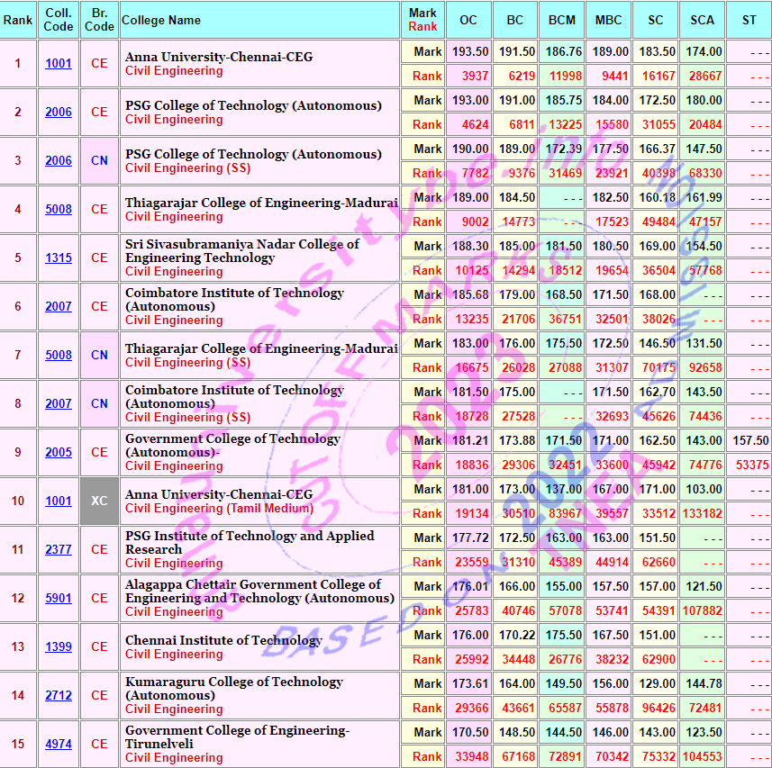Anna University Cut off Marks 2023 based on tnea 2022 admission (Last but 1 year) Branch wise