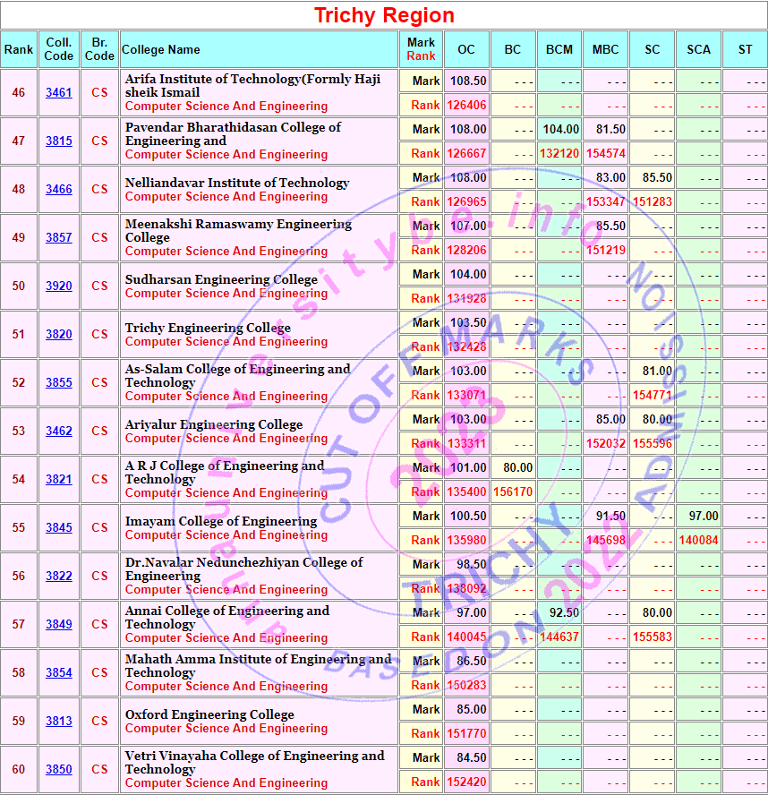 Cut off marks & Cut Off Ranks
