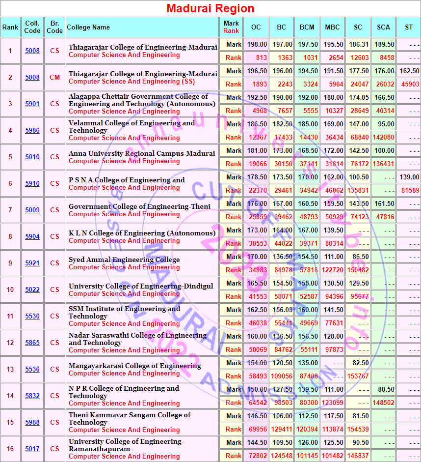 Cut off marks & Cut Off Ranks