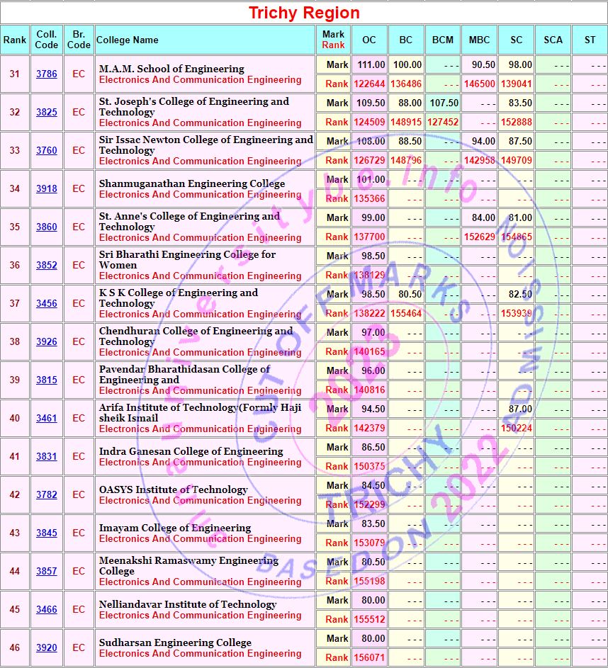 Anna University Cut off Marks 2023 based on tnea 2022 admission (Last but 1 year) Branch wise