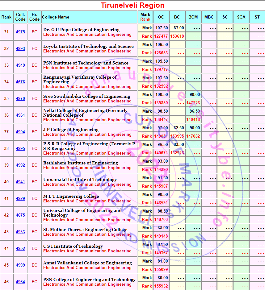 Anna University Cut off Marks 2023 based on tnea 2022 admission (Last but 1 year) Branch wise