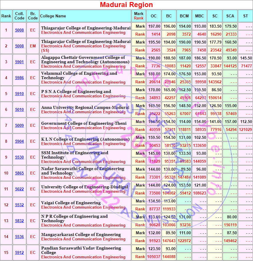 Cut off marks & Cut Off Ranks